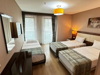 Отель приятно удивил, учитывая стоимость номера! Не надо сравнивать с 4 и 5-звездочными отелями! Приятный, отзывчивый персонал, уютные номера, хоть и не большие, хорошие завтраки (горячие блюда, йогурты, фрукты, выпечка, сыры, колбаса, свежие овощи, кофе, чай), в стоимость входит спа (турецкая, финская сауна, небольшой бассейн) с 12.00 до 19.00. Рядом остановка трамвая Т1 и в пешей доступности метро. До Айя София и Голубой мечети, Гранд базара можно дойти пешком. Рядом с отелем много мечетей, кафе. Напротив отеля небольшой магазин. В номере было тепло, работал кондиционер на обогрев (проживали с 7 по 11 января). Удобные матрасы и хорошая шумоизоляция. В номере чайник и чай-кофе бесплатно. Был гель для душа, тапочки. Шампуня, зубных принадлежностей не было. Уборка каждый день, включая смену полотенец, но постельное белье не меняли за 4 дня ни разу. Я бы оценила отель на твердые 3 звезды. Кому важно: портье говорит по-русски :)