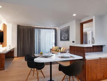 Стильный, современный отель с очень классными, уникальными интерьерами и большим вниманием к деталям и используемым материалам. Было очень приятно там находиться и взаимодействовать со всеми элементами интерьера номера.