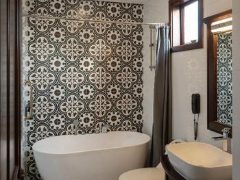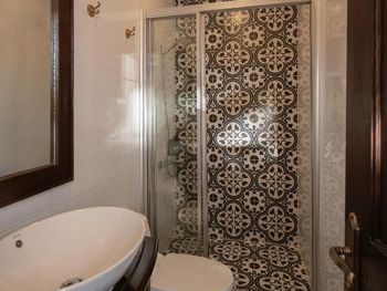 Отсутствие душевой кабины, только ванна. Не очень разнообразные завтраки.