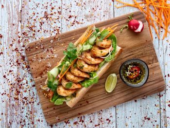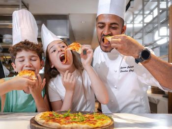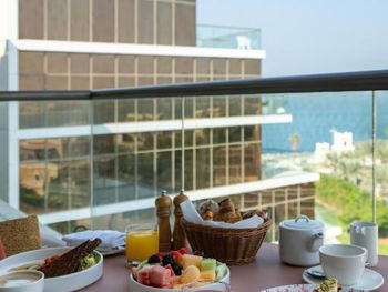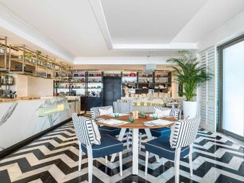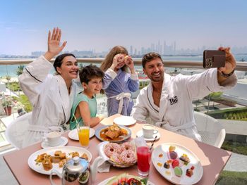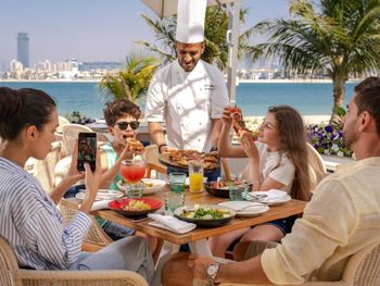 Для гостей сервируется завтрак «шведский стол», завтрак по меню или континентальный завтрак. При Th8 Palm Dubai Beach Resort, Vignette Collection by IHG работает ресторан, где подают блюда американской кухни, блюда французской кухни и блюда греческой кухни. Гости могут попросить приготовить вегетарианские, безлактозные и халяльные блюда.