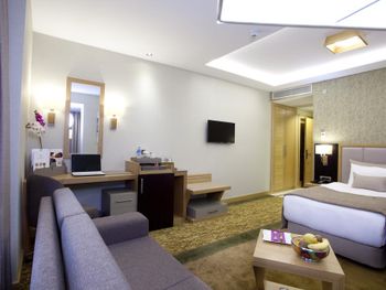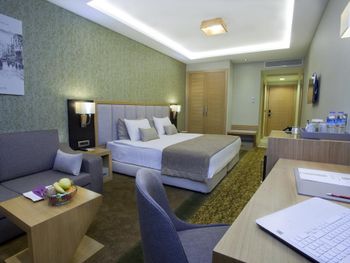 Рядом с отелем расположен ночной бар, музыка из которого, почему-то направлена больше на улицу, чем к посетителям бара. К тому же никто не предупреждает и не реагирует на бесконечные, шумные перемещения многодетных семей туристов прибывших из ближайших стран по коридорам отеля в ночное время. Короче, заснуть будет сложно.... Сервис во время завтрака не соответствует уровню четырёхзвёздочного отеля, так как видимо, ориентирован на целевой контингент посетителей отеля , который состоит в основном из больших семей «туристов бюджетников» из арабских стран. Очень дорогие СПА процедуры, причём необоснованно.... В целом, турецкий трёхзвездочный отель за деньги четырёхзвёздочного, но в центре города)