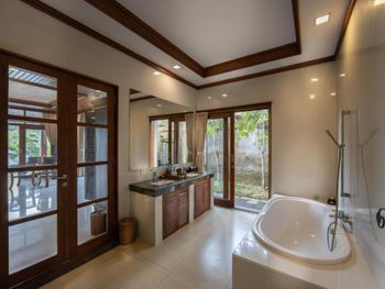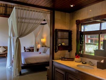 Уединенная обстановка, свой бассейн, отличное кондиционирование, хороший сервис ресторана - вкусная еда, доставляемая на виллу быстро, хороший быстрый интернет (что для Бали редкость), приятные мелочи, типа доставка утром на завтрак на автомашине (пешком там минут 7-10 до ресипшена).