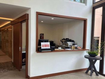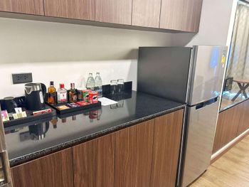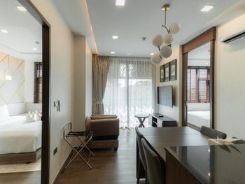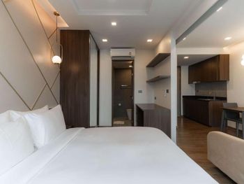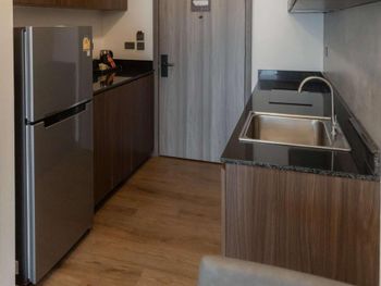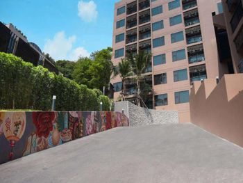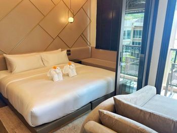 Отличный удобный со свежим ремонтом отель с апартаментами. Очень вежливый и дружелюбный персонал, отель находится на горке, но внизу есть лифт, либо по желанию, приезжает багги, если не хотитес амостоятельно подниматься. Также внизу на входе есть зал ожидания такси и прочего,с кондиционером и удобными креслами. Ресторан работает вечером и в нем запрещено курить, но еда очень вкусная и цены доступные. В номерах большой холодильник, очень много места для хранения вещей и прочего, мойка, чайная станция, вода в стеклянных бутылках, тапочки, халаты , зубные щётки и пасты, мыло, шампунь, гель для душа, кондиционер, наборы полотенец для лица, рук, тела и ног. Уютный диванчик перед большим ТВ с Ютьюбом и нетфликсом, выход на балкончик со столиком 2 креслами и вместительной сушилкой, 2 полотенца для пляжа, просторная ванная комната с отдельной ванной, душевой, раковиной, гардеробный вместительный шкаф. Зона гостиной отделяется перегородкой от спальни, вентиляция работает хорошо, 2 кондиционера. Перед отелем красивое озеро и разные кафе и рестораны, 7/11 и массажные салоны, цены очень доступные, пляж тоже близко, сразу после озера. На пляже 2 лежака 200б, также различные развлечения, пляж чистый и аккуратный. Кстати, мы заселение в 15:00, но нас заселили в 12, так как мы приехали рано, быстро все оформили и подняли нам тут же багаж.
