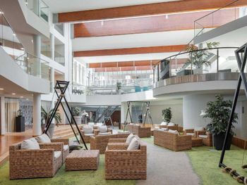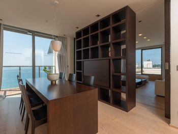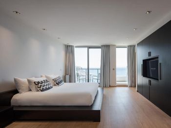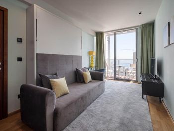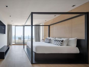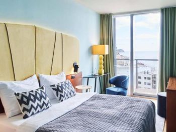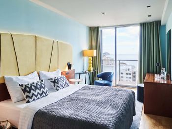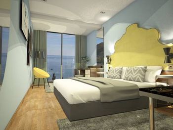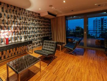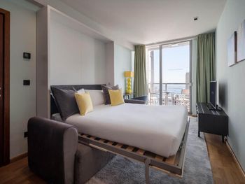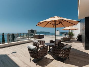 Наличие собственного пляжа, стоимость пользования которым включена в стоимость проживания. Балкон в номере. Зона бассейнов на крыше, современный дизайн общих помещений.