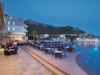 Featuring a panoramic terrace with view of the Adriatic Sea, the lobby bar serves a wide range of alcoholic and non-alcoholic drinks as well as snacks.