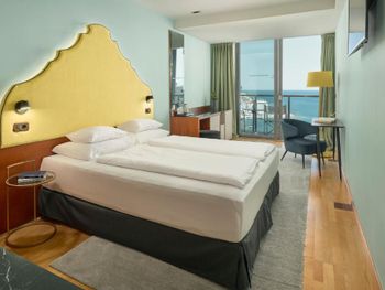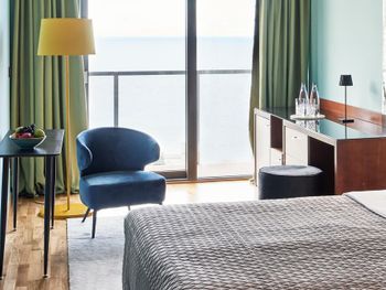 Соотношение цена/качество,цена завышена.Раньше с гостиницы открывался прекрасный вид на море,сейчас прям перед гостиницей стройка,которую видно со всех локаций территории,и только частично море между зданиями. Есть собственный пляж,но за 2 шезлонгов и зонт нужно заплатить 20€,рядом на пляже такая же услуга стоит 4,5€, вопрос зачем такой пляж?Ужины включают в себя только еду без напитков, цены на напитки так же завышены( сок в 250 мл, обошёлся в 3,5€).Мини бар в холодильнике за дополнительную плату,воду предоставляют только в день заезда,так же как кофе и чай, больше не добавляют
