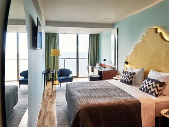 Мы были на третьем этаже , дверь пропускала звуки которые были в холе по вечерам и под нами было помещение для курильщиков , если открыт балкон то затягиало дым в номер. И ещё один нюанс , возле моря нет зоны отдыха с зонами и лежаками от отеля. Возможно это временно, кто на это рассчитывает узнавайте у отеля предварительно. Вид на море есть, но не большой. Рядом строиться отель который закрывает обзор.