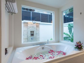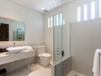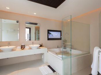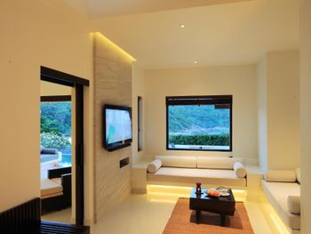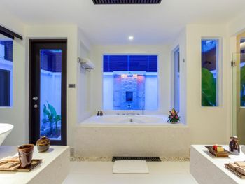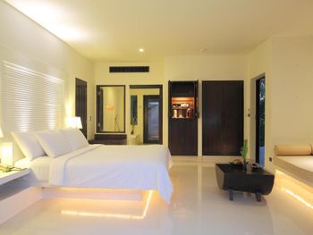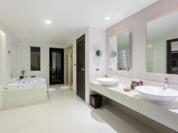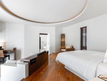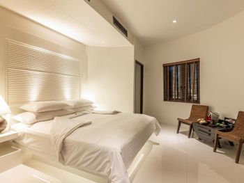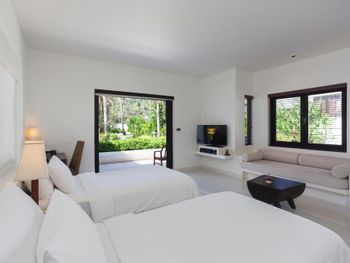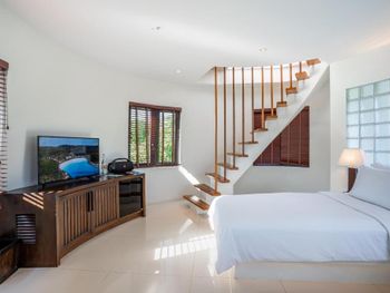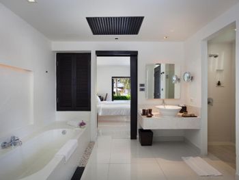 Просторные белые виллы выгодно выделяются на фоне голубого Андаманского моря. На каждой вилле есть большая отдельная терраса. В числе удобств — телевизор с плоским экраном, док-станция для iPod и DVD-плеер.