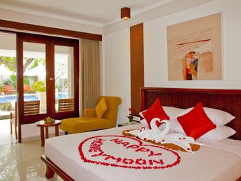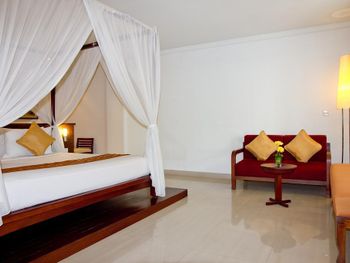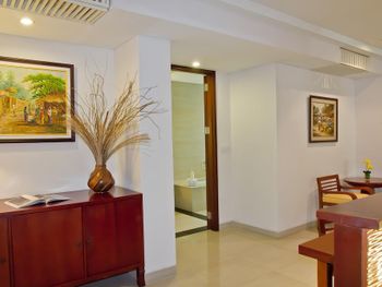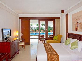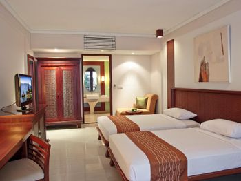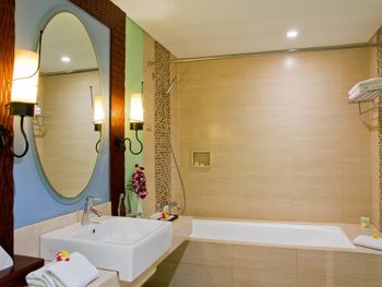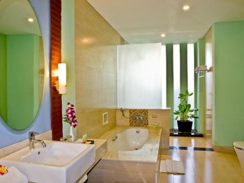 Номер большой, с балконом. Воду пополняли регулярно. Недорогой мини-бар. В номере есть ванна. Вкусные завтраки. До аэропорта 10 минут на такси (30000 рупий на BlueBird). Рядом аквапарк.