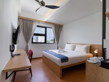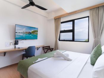 Это худшее размещение, учитывая цену за ночь, в котором мы когда-либо были. Провели здесь 9 ночей. Я искренне не понимаю, кто оставляет об этом месте такие восторженные отзывы. Это не четыре звезды даже по меркам Мальдив. Я бы не дал и трёх. 1. Нас не встретили на пирсе! Мы бронировали размещение за два месяца. Если бы не какой-то местный добрый человек, позвонивший в отель и сообщивший о нас, идти пешком было бы жарко и неприятно. К ранней лодке в аэропорт нас всё же отвезли (полноценного раннего завтрака тоже не было). 2. Отель заявляет, что его номера звукоизолированы. Это прямая ложь! Во-первых, если на пляже дискотека, то закрытые окна не помогут. Сама конструкция здания не задерживает звук, он проходит сквозь однокамерные стеклопакеты, и само здание вибрирует. Из девяти ночей две были испорчены. Менеджменту жалобы гостей безразличны. Никакой компенсации не последовало, как и не было извинений от отеля. Причем, букинг на это разводит руками, а отель не снимает пометку о звукоизоляции комнат. Во-вторых, картонные стены и дверь в номер, слышно абсолютно всё: уборку в коридорах, чужих детей, чужой секс. Мы рассчитывали на абсолютно тихое размещение, а по факту были крайне разочарованы. 3. Плохое соотношение цена-качество в ресторане, маленькие порции, недоваренная паста. 4. Четыре дня просили табличку "не беспокоить". Нонсенс. 5. Мушки в ванной, иногда был запах канализации. 6. Жили на пятом этаже в 310 номере, вид на море обалденный. Но есть одно но. Если утром не повезло с ветром, то все запахи от готовки с кухни будут у вас в номере, потому что вытяжка кухни находится на втором этаже по вашему фасаду. 7. Большая кровать состоит из двух отдельных матрасов. Спать вдвоем не удобно. 8. Аппарат с водой в номере есть, но она с каким-то странным привкусом. Налить кипяток и не забрызгать всё вокруг невозможно. 9. Сейф расположен неудачно, если вы забыли закрыть дверцу, об неё очень больно можно удариться. Только одна тумбочка в номере. 10.