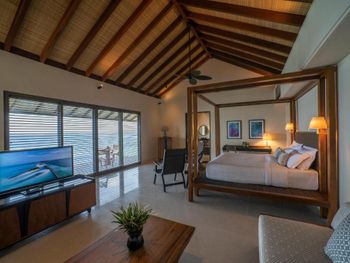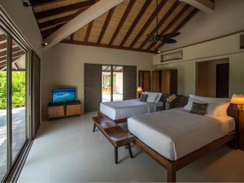 1) не понравился сервис менеджмента отеля: бронировали на одного взрослого и ребёнка, а счёт присылают на двоих взрослых и ребёнка 2) бронируем виллу на стороне «восход» (там в июле океан гораздо спокойнее), а размещают на другой стороне 3) питание не соответствует высшему уровню, без изысков 4) при спуске в море из нашей виллы был разбросан крупный строительный мусор (фото прикладываю) 5) в номерах не производят вечернюю уборку ( подготовку комнаты ко сну) 6) виллы внутри немного аскетичны, не хватает декора для уюта 6) на Мальдивы прилетаем не первый раз, здесь был худший сервис. К обслуживающему персоналу никаких вопросов нет (все максимально вежливые и услужливые). Однако в нашем случае отвратительно сработала Служба размещения, а также заметно, что в отеле на всем экономят.