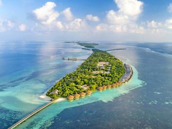 Хороший, комфортный отель, среднего размера (по Мальдивским меркам :)), за 15 минут от одного конца, до другого пешком. Зелёная, ухоженная территория, по которой приятно и прогуливаться и ездить на велике, густая растительность, на дорожках везде тенёк. Можно доехать до соседнего острова, по пути на мостике увидеть скатов и черепах, акулки повсюду. Добираться до острова на внутренних авиарейсах (что комфортнее, менее шумно и багаж точно приедет вместе с вами :)), перед этим общий лаундж. Персонал доброжелательный и всегда готов помочь (забыла раствор для линз, купили доставили его из Мале :)), по запросу дали два номера рядом, на мелководье с песком. Питание среднее, поесть можно найти, по меню лучше. Неплохие кальяны. Рыбки есть, напротив трёхсотых вилл метрах в 50ти риф, видели там белого огромного ската. Спа хороший, но не «вау», и не хватает прозрачного стеклянного пола в бунгало для массажа
