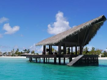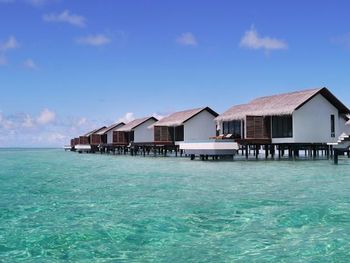 Брали виллу на сваях на воде, очень понравился свой персональный заход в воду. Хорошо организована логистика - как встреча в аэропорту Мале, так и перемещения по двум островам.