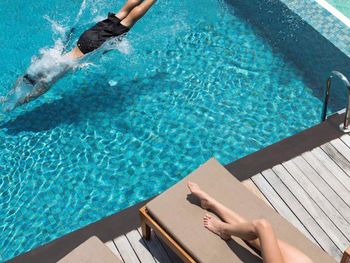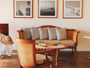 Понравилось всё! Поражает сколько вкладывается труда, времени и сил на поддержание острова в идеальном состоянии, чистят даже берег! Но в некоторых местах есть кораллы, обувь для плавания не будет лишней, хотя можно купить в магазине, в котором имеется всё необходимое - маски с трубкой, крем для загара, ботинки для кораллов и тд. Вилла на пляже отделена от соседей растительностью, есть ощущение кулуарности. Со стороны пляжных вилл достаточно мелко. Номер огромный, чистый, уютный. Тщательная генеральная уборка номера каждый день! Персонал отзывчивый и очень доброжелательный, как с другой планеты. Огромное спасибо каждому сотруднику за незабываемый отдых! Про еду могу бесконечно говорить, еда поразила разнообразием и вкусом. Настоящие испанские тапасы, сингапурский краб, итальянская пицца и паста, мексиканские блюда и тд и тп, действительно, на высшем уровне приготовлено! Есть ещё 2 ресторана, куда нужно записываться - китайский и французский. Персонал изумительный, собственно, как и на всем острове. В китайском шеф повар китаец, всё очень вкусно. По средам балуют шикарным барбекю из мяса и морепродуктов. Винная карта выше всяких похвал, шикарное вино изо всех стран! Даже есть вкусное разливное пиво! Фрукты каждый день приносят прямо в номер, большое разнообразие, спасибо, очень они были кстати. Остров соединён длинным мостом с курортом-сестрой. Можно пользоваться всеми удобствами на двух островах. Мост - восторг, едешь на велосипеде прямо через океан. По середине лесенка, можно выйти на отмель. И есть ощущение, что много суши, ездишь туда-сюда, здорово! Сверху можно засечь разнообразную морскую живность. Риф шикарен! Кого там только нет! В общем, отель поразил сервисом и едой. Ну, а про вид и риф говорить нечего. Большое спасибо каждому сотруднику!