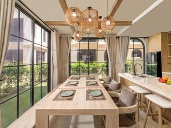 Новая просторная трехэтажная вилла с подвальным помещением и лифтом. Красивая территория вокруг виллы.Свежий ремонт, очень удобные кровати. В нашей вилле был собственный бассейн. До пляжа и обратно возят на баги. Также можно на баги доехать до близлежащих кафе. Пляж очень понравился, достаточно малолюдный, можно пользоваться лежаками и зонтиками. Завтраки вкусные, шведский стол. В пешей доступности есть небольшой продуктовый магазин. Бесплатно предоставляют велосипеды. Джейн была очень любезной, всегда на связи и отвечала на все интересующие нас вопросы.