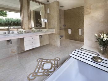 Снимали отдельную виллу. При заселении насторожило,что в санузле при спальне работали сантехники- что- то ремонтировали на потолке. На полу была лужа воды. Через час ушли,сказав,что все исправили. Пришли ребята из румсервиса и полчаса убирались в туалете.