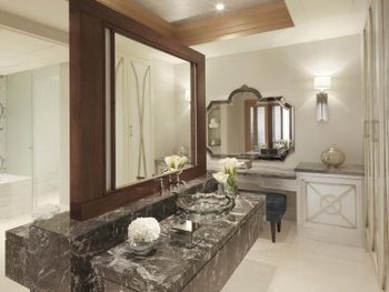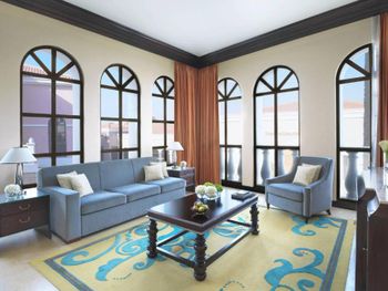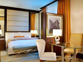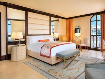 Окруженный ландшафтным садом отель Ritz-Carlton Abu Dhabi был построен под влиянием архитектуры эпохи Возрождения. К услугам гостей открытый бассейн, тренажерный зал, 8 ресторанов и частный пляж с видом на пролив Гранд-канал.