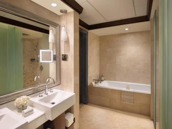 При отеле Ritz-Carlton работают 8 ресторанов, где можно попробовать блюда ближневосточной, средиземноморской и паназиатской кухни. Доставка еды и напитков в номер осуществляется круглосуточно.