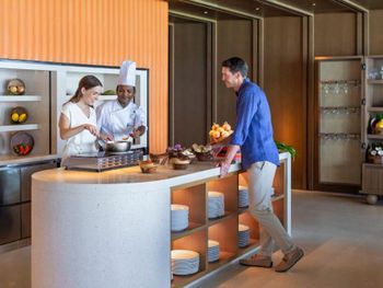 При The Ritz-Carlton Maldives, Fari Islands работает ресторан, где подают блюда кантонской кухни, блюда индийской кухни и блюда итальянской кухни. По запросу для гостей приготовят вегетарианские, безлактозные и халяльные блюда.