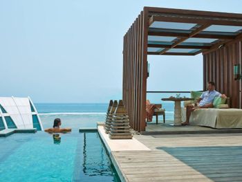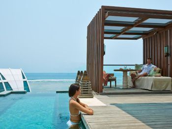 Безумно красивый бассейн с видом на океан, вечером зажигали огонь вокруг бассейна. приветливый, заботливый персонал, территория большая и красивая, чистый пляж.