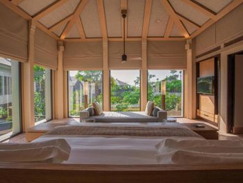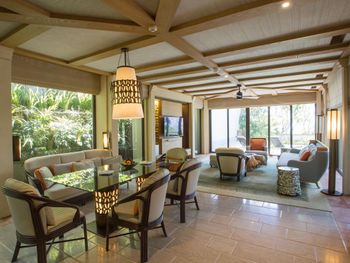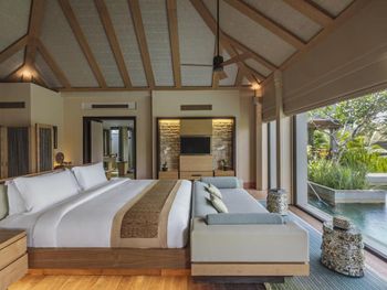 К услугам гостей просторные люксы и виллы. В числе удобств телевизор с плоским экраном и спутниковыми каналами, DVD-плеер, кондиционер, гостиный уголок с диваном и мини-бар. В распоряжении гостей вилл собственный бассейн, столовая, мини-кухня и гостиная зона. Из их окон открывается вид на бассейн или обширный панорамный вид на океан.