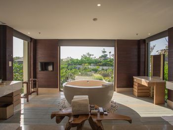 Прекрасная территория, шикарный вид сверху из лобби, очень зелено, чисто. Тёплый, чистый бассейн, но не очень большой Много свободных лежаков у бассейна и океана, хорошее обслуживание у бассейна, бесплатные spf крема от 20 до 50. В спа центре есть бесплатные сауна, хамам, горячий бассейн с гидромассажем и холодная купель и там же есть открытый бассейн с разными гидрозонами, но время надо бронировать заранее, 1 час бесплатно, мах 5 человек. Пилатес, йога по расписанию. Завтрак шикарный, выбор огромный, прекрасный вид из ресторана для завтрака. Номер очень просторный и комфортный. Вечером подготовка номера ко сну.