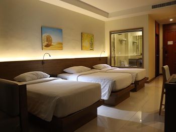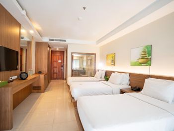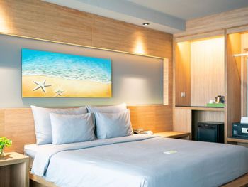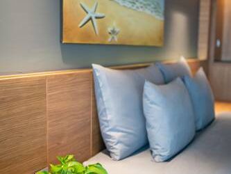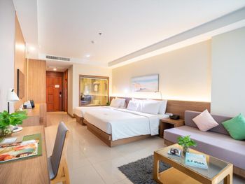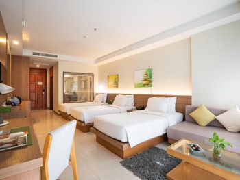 комары на балконе. вечером не посидишь спокойно. неудобные подушки из синтепона. внутри одни комки. достаточно далеко от пляжа. очень долго заселялись. ждали до 14 часов, когда уберут наш номер. так как якобы отель "полный". (обман. позже оказалось что отель заполнен на 25%. это видно по количеству людей на завтраке и в отеле.) в 14 часов отвели в номер но он оказался не убран! извинились. и предложили другой номер. убранный. зачем ждали 2 часа? но он оказался с раздельными кроватями! )у нас одна большая) ещё подождали полчаса.... отель ведь "полный" свободных номеров нет... в итоге дали номер на 4 этаже вместо второго. к слову. на 4 этаже вторая половина коридора просто перегорожена лентой. так как людей очень мало. странные люди. зачем создавать иллюзию заполненного отеля? престиж? за выселение на 3 часа позже взяли дополнительно 1000 бат. не думаю что наш номер кто-то ждал.