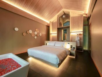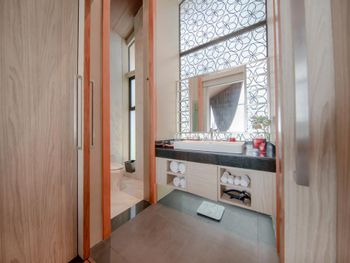 Нет слов... Потрясающе! Всё на высшем уровне - персонал, система умный дом, огромная мягкая кровать, интерьер, полностью оборудованная кухня, ну и конечно инфинити бассейн. Выходить из номера не хотелось. Пожалуй это лучший номер в котором мне приходилось бывать, а я много где бывал. Были опасения что будет трудно подниматься, но оказались напрасны - до номера можно вызвать электрокар, даже не от лобби, а совсем снизу. И обратно. Первый день так и ездили, пока не взяли байк там же, без депозита. Наша вилла была на втором уровне, не так уж и тяжело от парковки. Завтрак не брали, сказать нечего. Бассейн - это реально круто! Это стоит того! Обязательно вернусь!