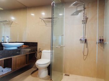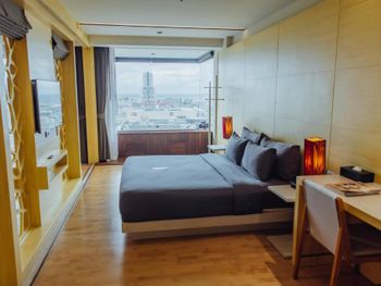 All rooms feature stylish interior with floor-to-ceiling glass sliding doors. They are equipped with air conditioning, a flat-screen TV with international channels and a minibar. Hot and cold shower facilities are included in a private bathroom. Free toiletries and slippers are also provided. Suites features a spa bath and a tea/coffee maker.