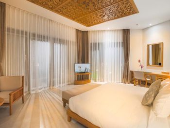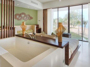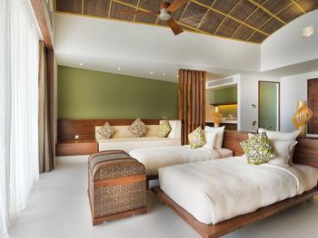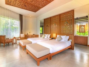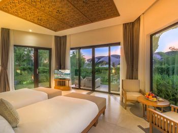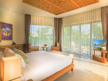 Хороший отель, с большой зеленой территорией. Мы жили в бунгало, т. к. виллой это не назвать. Бунгало просторное, кровати удобные. Пляж, бассейн все отлично. Хороший завтрак. Но! Отель расположен в удалении. Рядом нет ни ресторанов, ни магазинов, ни аптек. Чтобы до них добраться, нужно заказыаать такси, потому что пешком идти 2 км по глухой дороге с бамбуками. Я ни разу не рискнула. Ресторан при отеле с высокими ценами и не вкусными блюдами. Суп Фо стоит 900р. Заказали пиццу Маргарита- такой гадости я ещё не пробовала. В общем расположение такое себе. И еще напор воды в бунгало! 10 секунд норм, а потом совсем тонкой струйком секунд 30-40. Но мы приловчились.