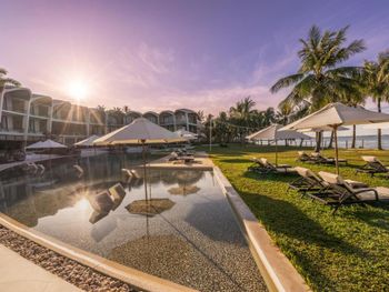 Хороший отель с иностранным менеджментом, соответствует 5 звездам. Территория продумана, все сделано красиво. Решили отказаться от номеров и попробовать виллу - очень понравилось. Были перед Новым годом - на пляже всем хватает мест даже в пик сезона. Вкуснейший BBQ буфет - в городе такой не найдете. Нормальный интернет. Есть спортзал.