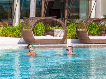 Тихо, красиво и мало народу. Зелёная территория и шикарный бассейн.Брали виллу у бассейна, отличный вариант для спокойный людей)