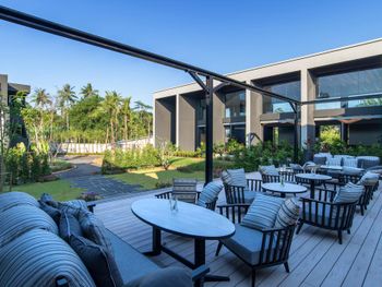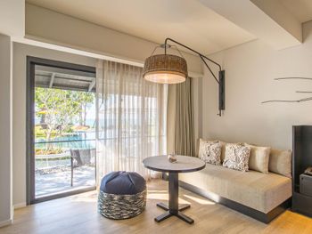 красивый , стильный отель , чистая ухоженная территория. Красивые бассейны , вид на море , лежанки на террасах в тени деревьев. если нравится стиль хай тек - то вам сюда. брали номер с выходом в бассейн, приятная опция. персонал на рецепшн помогал решать вопросы.