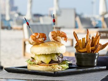 К пляжному клубу Nation Riviera ведет оборудованный кондиционерами мраморный подземный переход, проложенный под набережной Корниш. К услугам гостей пляжного клуба Nation Riviera 200-метровый частный пляж, уединенные домики кабана, просторный пейзажный бассейн с садом и бар у бассейна, а также эксклюзивные фитнес-удобства. Оформленный в виде пиратского корабля детский клуб Treasure Island с бассейном и водной горкой предназначен для безопасного и увлекательного отдыха детей на открытом воздухе и в помещении под постоянным наблюдением воспитателей.