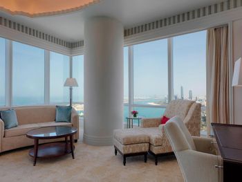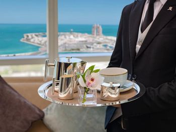 Очень хороший и роскошный отель высокого уровня в спокойном районе, который как я поняла больше нацелен на поездки по бизнесу, поэтому на завтраке можно увидеть людей в костюмах или тех, кто работает за компьютером. Так же кто приехал семьями, парами и тд. Это не отель-резорт только для пляжного отдыха, как на Саадияте, поэтому вся прелесть в том, что на приватном пляже практически нет людей. Мы отдыхали в конце сентября и в воде было человек 4-5, на пляже человек 8-9 максимум. Абсолютно спокойно, нет волн, вода бирюзовая. Мы остались настолько довольны, что я на третий день отдыха сразу взяла этот же отель на отдых в январе. Вообще в целом район Корниш спокойный, мало людей. Здесь хороший и достойный контингент. Персонал отличный, решает любые вопросы! Уровень персонала на высоте! Абаи и платки в мечеть выдают на стойке консьерж-сервиса. Нам бесплатно повысили категорию номера. Завтраки и ужины прекрасные! На пляж нужно идти по специальному подземному переходу. Бассейн есть на 3 этаже и на пляже. Из ресторанов есть Кабана на пляже рядом с бассейном, мишленовский ливанский ресторан на пляже, в самом отеле мишленовский итальянский ресторан, лаундж зоны. Один бар по интерьеру чего стоит! Уже жду, когда вернемся в этот отель снова! Спасибо всему перосаеаоу за заботу и внимание! Рекомендую 100%.