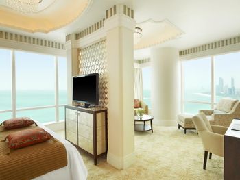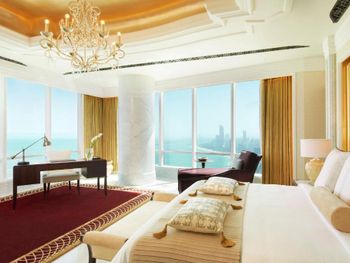 В распоряжении гостей 283 номера и фирменных люкса с живописным видом на великолепную набережную Корнич города Абу-Даби. Из люкса Abu Dhabi, расположенного на большой высоте в переходе между 2 небоскребами Nation Towers, открывается замечательный круговой вид. Для гостей отелей сети St. Regis предусмотрены бесплатные услуги дворецкого.
