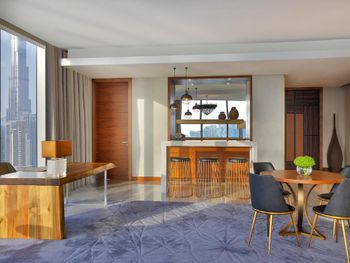 Хорошее расположение — пешком до Бурж Халифы по красивому району, отличный доброжелательный персонал. Берите номер с доступом в лаунж — хороший выбор напитков, очень вкусные десерты вечером. Номер большой. В отеле замечательные рестораны — в итальянском вкуснее, чем в некоторых местах в Италии, в японском — отличные устрицы и потрясающий вид.