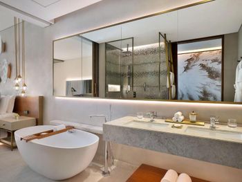 Отель The St. Regis Downtown, Dubai расположен прямо на берегу Дубайского канала, в нескольких минутах ходьбы от оживленного центра города и небоскреба «Бурдж-Халифа». Из отеля открывается панорамный вид на город. К услугам гостей открытый бассейн. В 5 ресторанах отеля гостям предложат богатый выбор блюд от шеф-повара, включая многочисленные блюда интернациональной кухни и коктейли, созданные профессионалами.