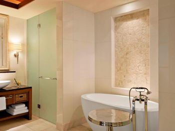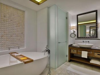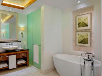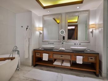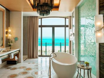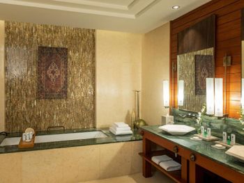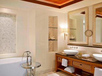 Просторные номера курортного отеля The St. Regis Saadiyat оформлены в средиземноморском стиле. В числе удобств кровати с роскошными пуховыми одеялами и подушками, телевизор и док-станция для iPod. Собственная ванная комната с 2 раковинами, отдельно стоящей ванной и тропическим душем укомплектована туалетно-косметическими принадлежностями марки Remède.