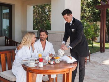 Персонал в ресторане доброжелателен, завтраки, служба дворецких , море.