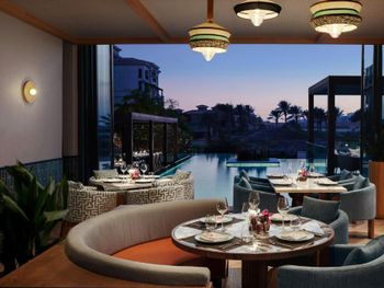 В 6 ресторанах и барах отеля подают разнообразные блюда, включая блюда современной греческой и средиземноморской кухни, а также блюда кухни юго-восточной Азии.