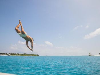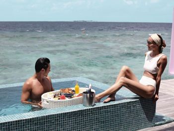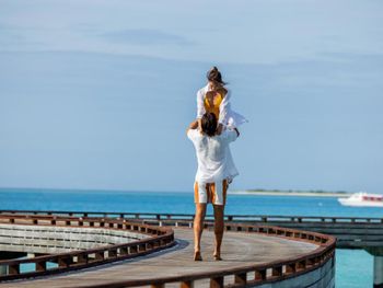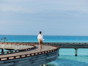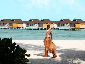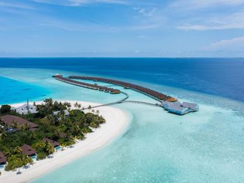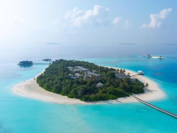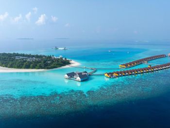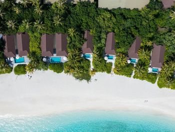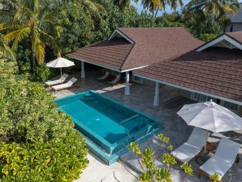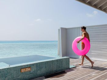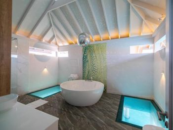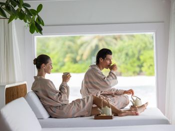 All villas are fully equipped with flat-screen satellite TV, disco bathtub, snorkeling gear, minibar, espresso machine, universal power sockets, USB ports, electronic safe, and signature lightweight bathrobes, along with complimentary toiletries including shampoo, conditioner, body wash, dental, and shaving kits. The resort is accessible via a 40-minute seaplane journey from Velana International Airport, Malé (additional charges apply). Guest flight details for both arrival and departure must be provided at least 4 days prior to arrival to arrange transfers.