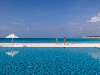 Отель с безобразным менеджментом. Из недостатков: Полная беда с организацией трансфера. На придёте не встретили, пришлось искать самой стойку, на и за ней никого не было. Пытались при прилёте в 9 утра посадить на трансфер в 15.00, когда я не согласилась - нашли место на трансферн в 11.00. В лонж никто не проводил, искала сама. На вылете : отправили нашу семью разными трансферами, с разницей в 2 часа! В итоге дети сидели в аэропорту с 6 7 до 9 утра. С организацией просто мрак, если выберете этот отель - проверяйте сами все и за 2 дня минимум проверьте на какой трансфер обратно вас посадили, чтобы не сидеть в аэропорту несколько часов. Первый раз со мной такое на мальдивах. По отелю ещё из минусов, кроме катастрофического менеджмента: 1. Рифа толком нет, смотреть нечего. 2. Если вы с детьми - детских велосипедов нет. Только взрослые. 3. Маски есть в номере, но самые дешёвые. 4. Ласты взять целый квест - в дайвинг центре выдают, но там никогда никого нет. 5. На пляже у пляжных вилл нет ни шезлонгов, ни зонтов. 6. Самый ужас для нас был - представление отеля о том как надо развлекать)). В 17 к бассейну выкатывали тумбу со старым оборудованием и хрипящими колонками, это «диджей» с навязчивой громкой музыкой. Приходилось уходить(. 7. Если вам надо работать - интернета на водных виллах нет от слова совсем. Не работает. После жалобы принесли модем и проблема решилась. 8. Батлера нет, название есть, а внимания нет. 9. Полная катастрофа со СПА. Даже не тратьте время. Работают одни и те же три человека, делают все, от массажа до маникюра. И все делают плохо. Но в спа есть прекрасный тихий бассейн и видовая веранда, детей не пускают, поэтому тихо, красиво и очень комфортно оттуда плавать в океане. Из процедур не стоит брать ничего.
