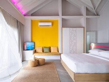 Все виллы оснащены телевизором с плоским экраном и спутниковыми каналами, ванной со светомузыкой, стендом с принадлежностями для сноркелинга, фирменными легкими халатами, мини-баром, эспрессо-машиной, универсальными розетками для зарядки, USB-портами и электронным сейфом. В числе удобств — бесплатные туалетно-косметические принадлежности, включая шампунь и кондиционер для волос, гель для душа, а также набор для чистки зубов и бритья.