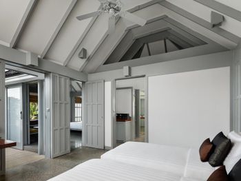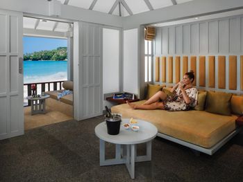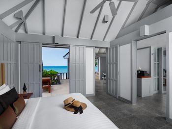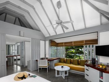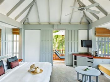 В номерах обустроена просторная открытая лаундж-зона с видом на сад и пляж. В числе удобств — спутниковое телевидение.