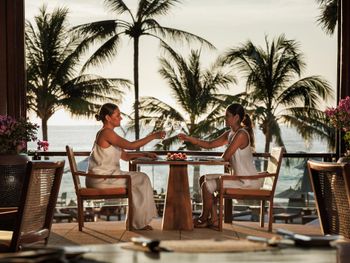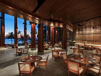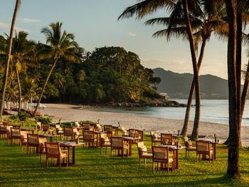 С террасы для загара на пляже открывается прекрасный вид на Андаманское море, особенно во время заката.