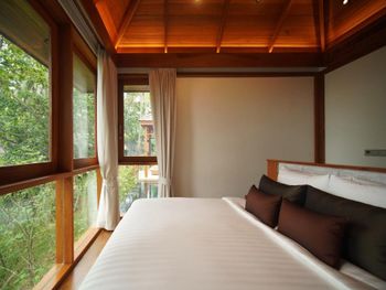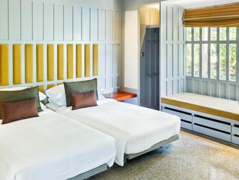 По приезду бесплатно сделали апгрейд номера, с видом на море. Встретили с браслетами из живых цветков жасмина. Отель утопает в зелени, прям джунгли. Снаружи Бунгало кажется маленьким, но внутри все очень комфортно и удобно расположено. Внутри отделка деревом, современный ТВ, нет русского канала, кондиционер работал хорошо, не было шума, есть репеллент, ванной есть все необходимые аксессуары, для пляжа бесплатно предоставляются шлепки, шляпы, пляжная сумка и вееры, зонты от дождя. Кофемашина и чайный набор, вода в бутылках, приветственная тарелка с фруктами. Вечерняя подготовка номера ко сну, украшают подушки цветами живыми. Возле своего домика также можно отдыхать на шезлонгах, есть сушилка для белья. В ванной душ, халаты, тапочки. Завтрак разнообразный, фрукты, йогурты, омлет-яичница, мюсли, орехи, салаты , рыбная, мясная, сырная тарелки, димсамы, много выпечки, блинчики, вафли, суп-бульон с разными наполнениями на выбор, лапша, рис, овощи, соки, чай/кофе, молоко, игристое вино, крепкий алкоголь. Меню пляжного ресторана довольно дорогое, в цену не включены налоги и сборы (+17% сверх). До других ресторанов и спа-салона на территории не дошли. Шезлонги всегда можно найти, отдыхающих много, но нет проблем с лежаками. Вечером живая музыка. В четверг было бесплатное угощения у бассейна от ресторана , с мясными закусками, сладкой выпечкой, мороженым, соки, чай-кофе. На территории чисто, вежливое обслуживание. 2 бассейна, с видом на море. Свой частный пляж, рядом ещё соседний отель, но людей нет. За пределами отелям сразу есть магазинчики, кафе. Европейцы в основном, получился спокойный , тихи, уединённый отдых.