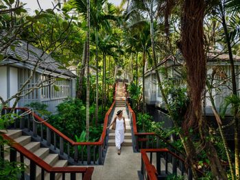 Отель оформлен стильно и элегантно. Здание отеля построено в тропической бухте и утопает в зелени. В здании нет лифта. Гости могут полюбоваться природой прогулявшись по лестницам и пешеходным дорожкам курортного отеля.