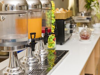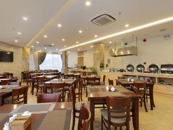 Приемлемый завтрак, но быстро надоедает. Если придти позже сок и фрукты Вам не увидеть и не попробовать.