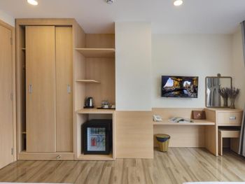 Вешалка в шкафу отпадала. Нет вешалки для полотенца в ванной у раковины. Плохая звукоизоляция. Вид из окна на другие маленькие здания вокруг отеля. Кондиционер дует прямо на кровать, на ночь не оставишь. Завтрак: мало выбора блюд, почти нет мясного. Не было свободного байка 31.12.2018